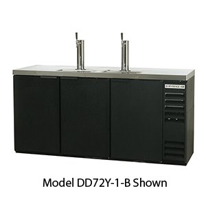 Draft Beer Cooler, 72" W, 23" D, 19.4 cu. ft., (3) doors, (3) keg capacity, door locks, (2) dual angle faucet columns, stainless steel exterior, stainless steel top, galvanized interior, self-contained refrigeration, 1/4hp. Contact Customer Service for additional voltage options. UL, cUL, UL-EPH, MADE IN USA ( Beverage Air - DD72Y-1-S )